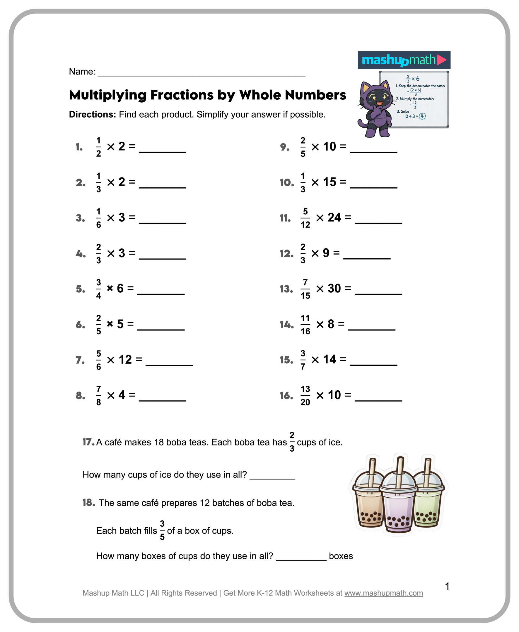 ▶️ Multiplying Fractions Word Problems (A)