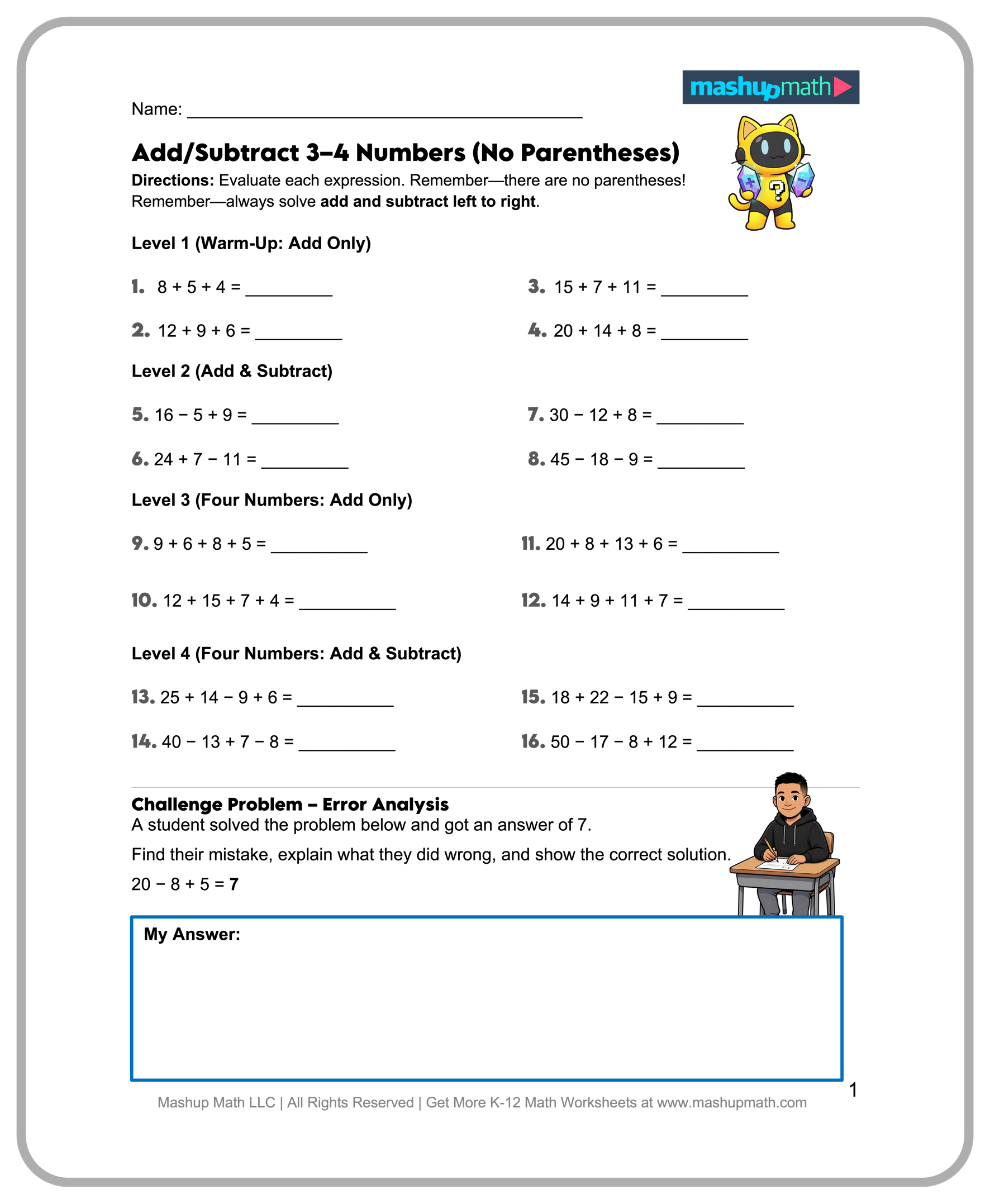 ▶️ Add/Subtract/Mult. 3-6 Numbers (No Parentheses)(A)