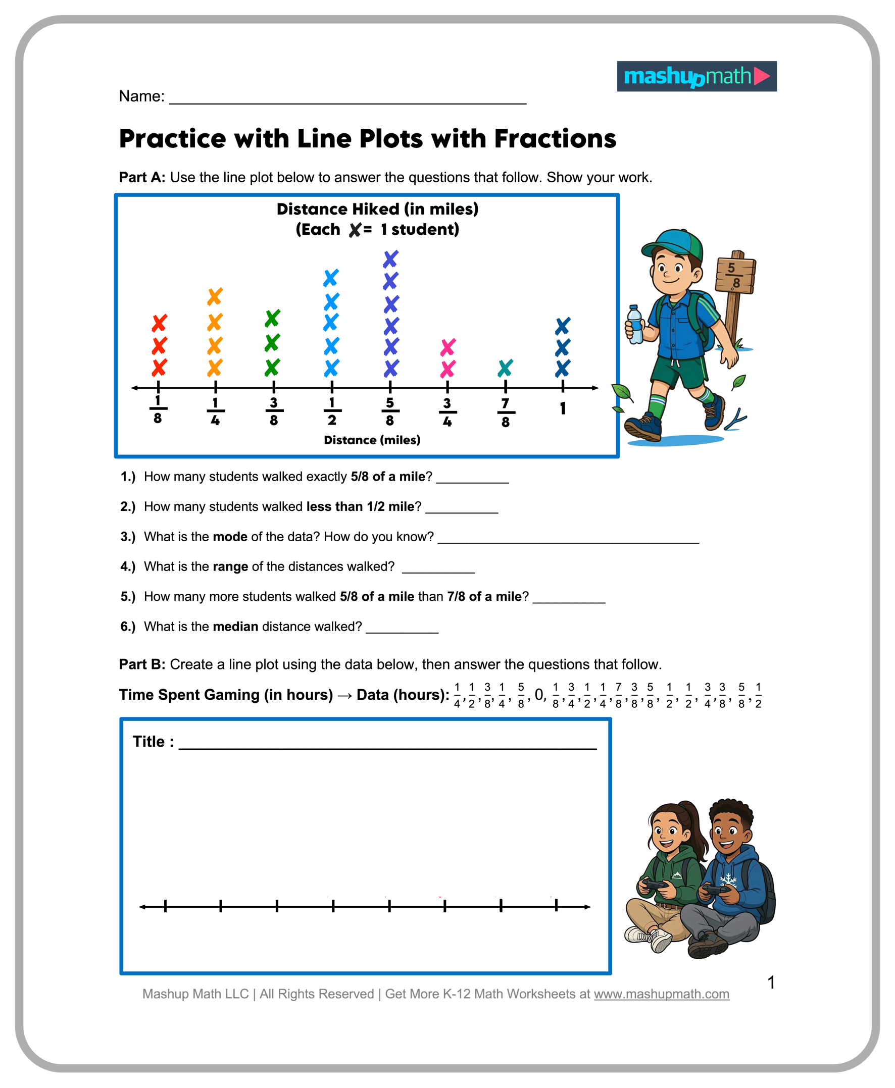 ▶️ Line Plot Word Problems (Add/Subtract Fractions) (B)