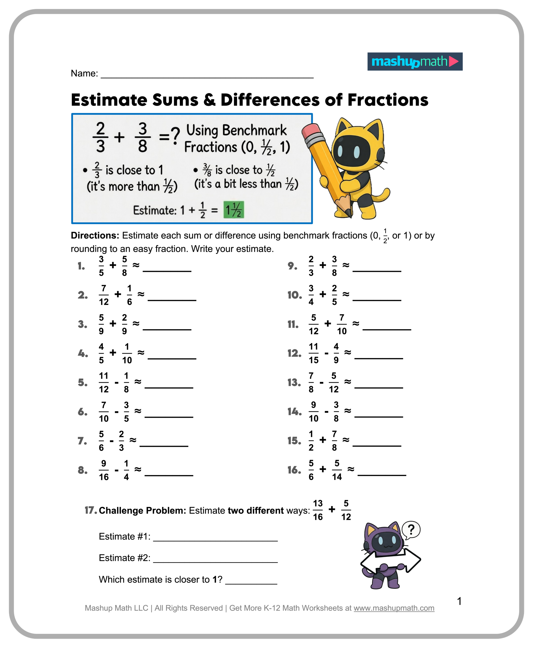 ▶️ Add/Subtract Fractions (Unlike Denominators) (B)