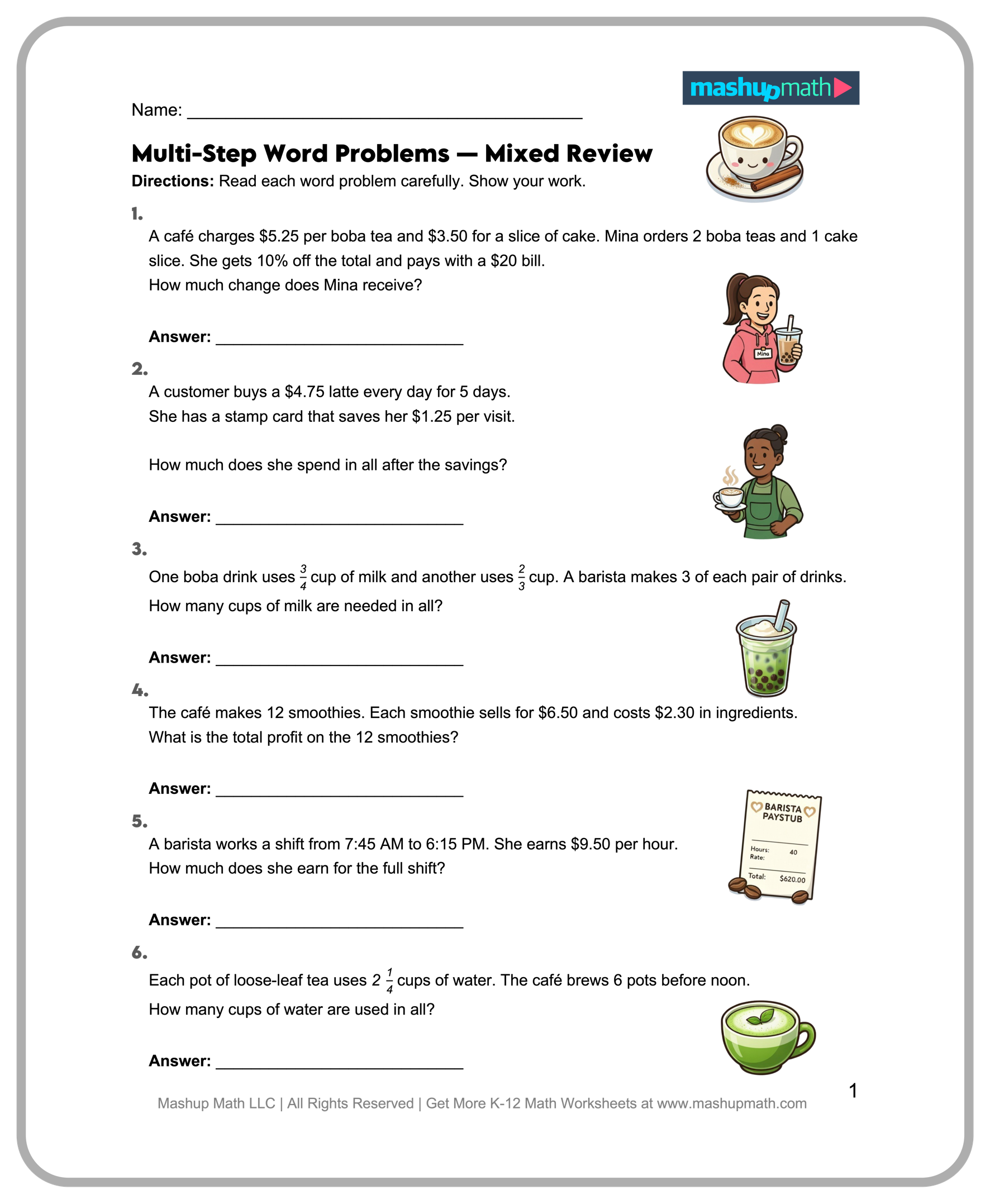 📍 Multi-Step Word Problems — Mixed Review (A)