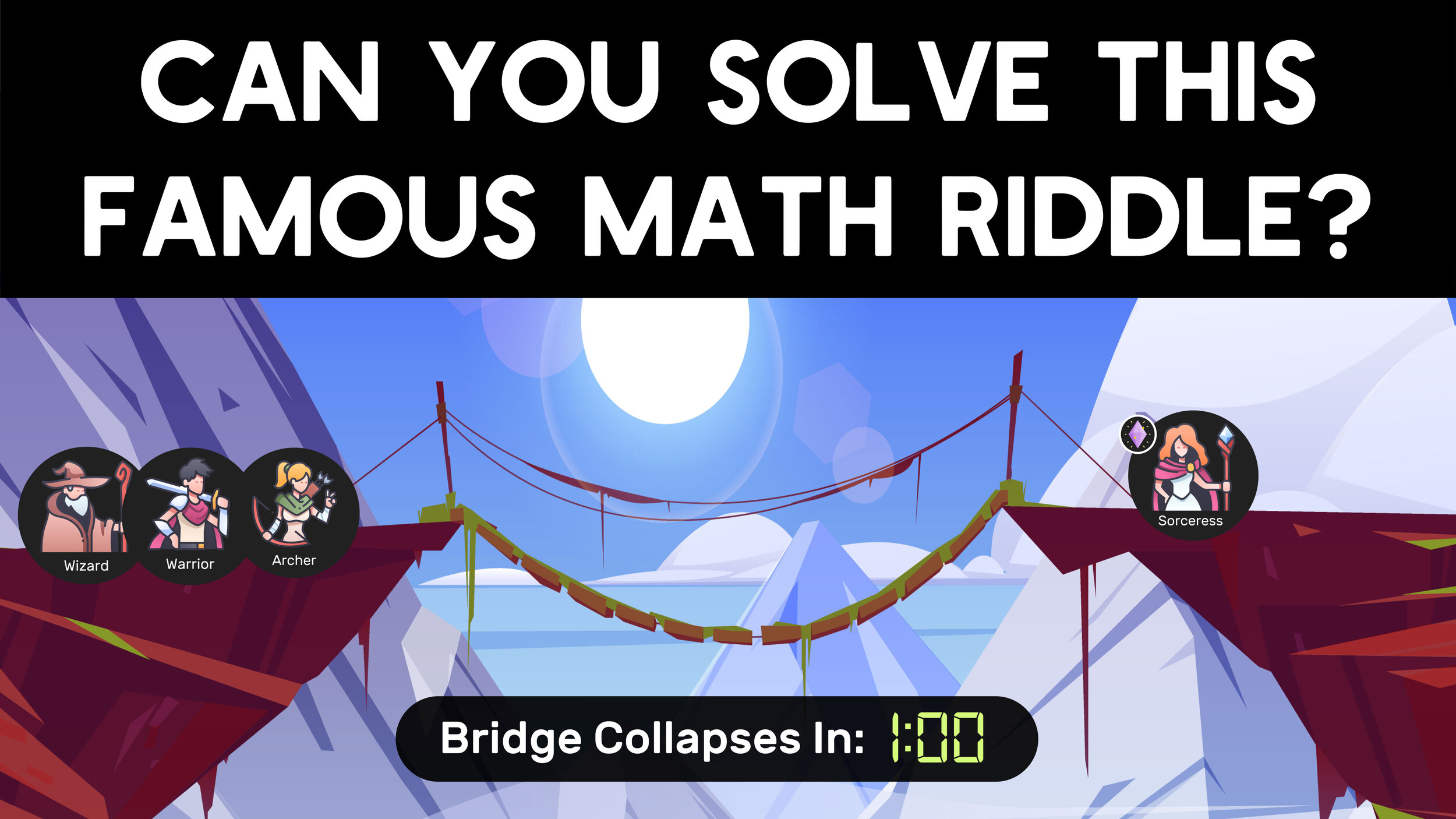 Check out our animated Destiny Bridge Riddle Video for a detailed explanation of why the answer is 15 minutes AND for a super fun bonus riddle!