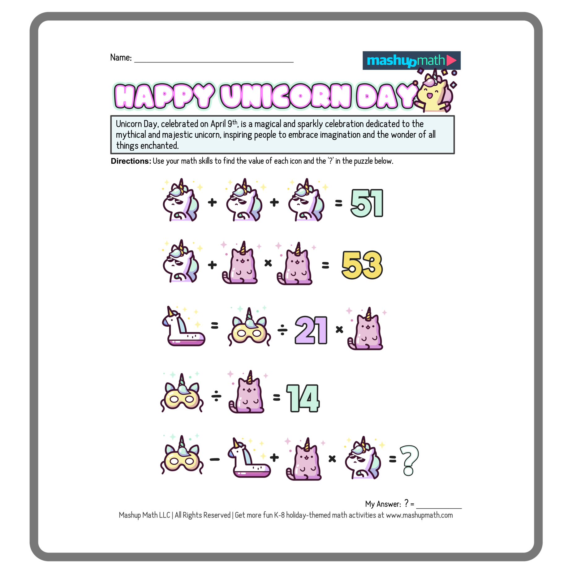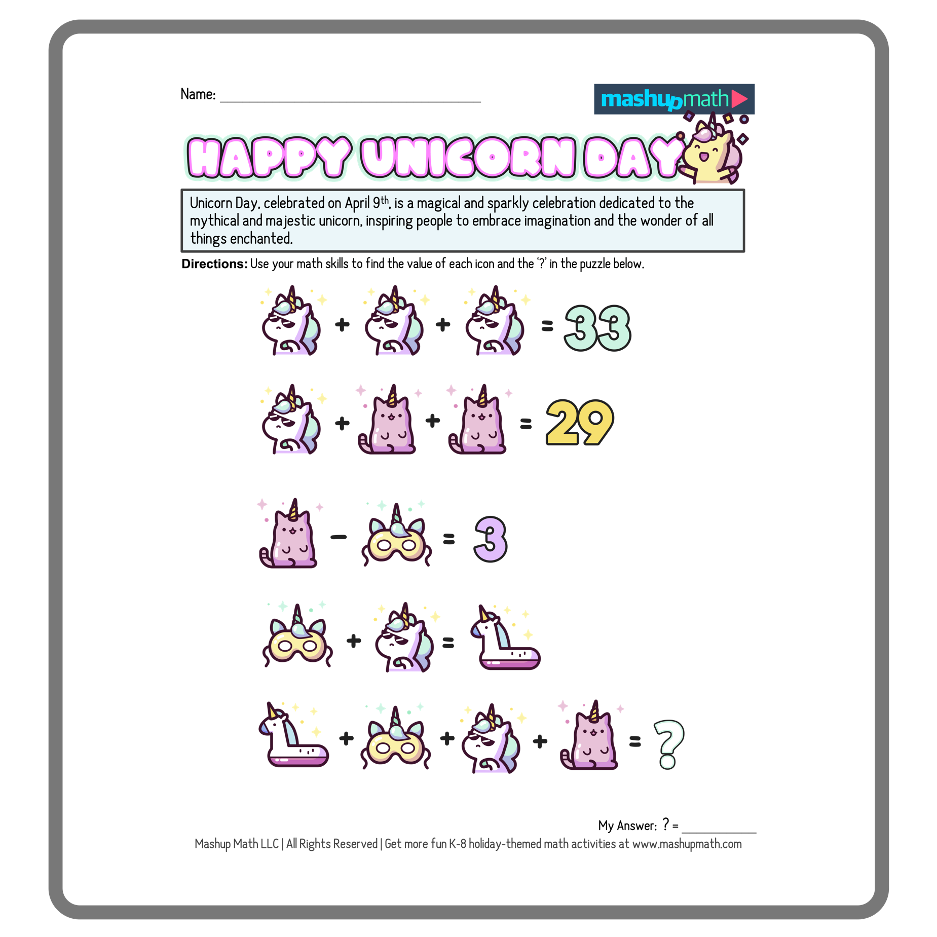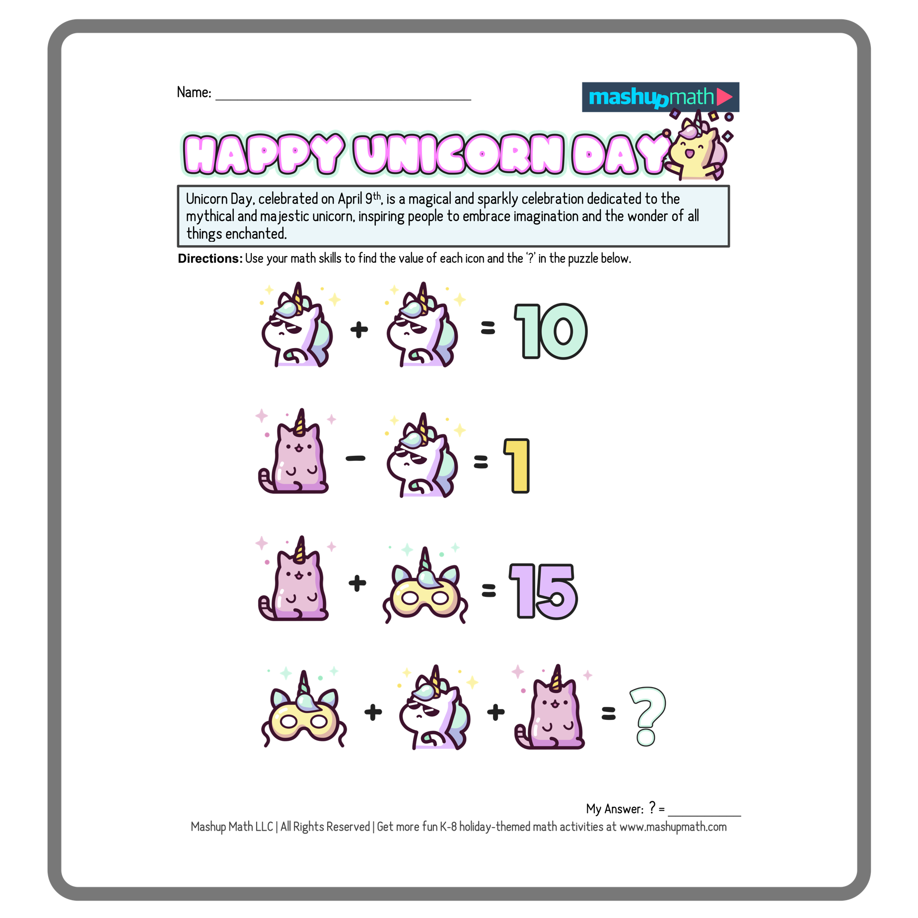 April 9th is National Unicorn Day—a time to celebrate the magic and wonder that these mythical horned creatures. You can celebrate with your students by sharing some whimsical unicorn-themed activities into your upcoming lesson plans, adding a touch of fantasy and fun to your students' learning experience!