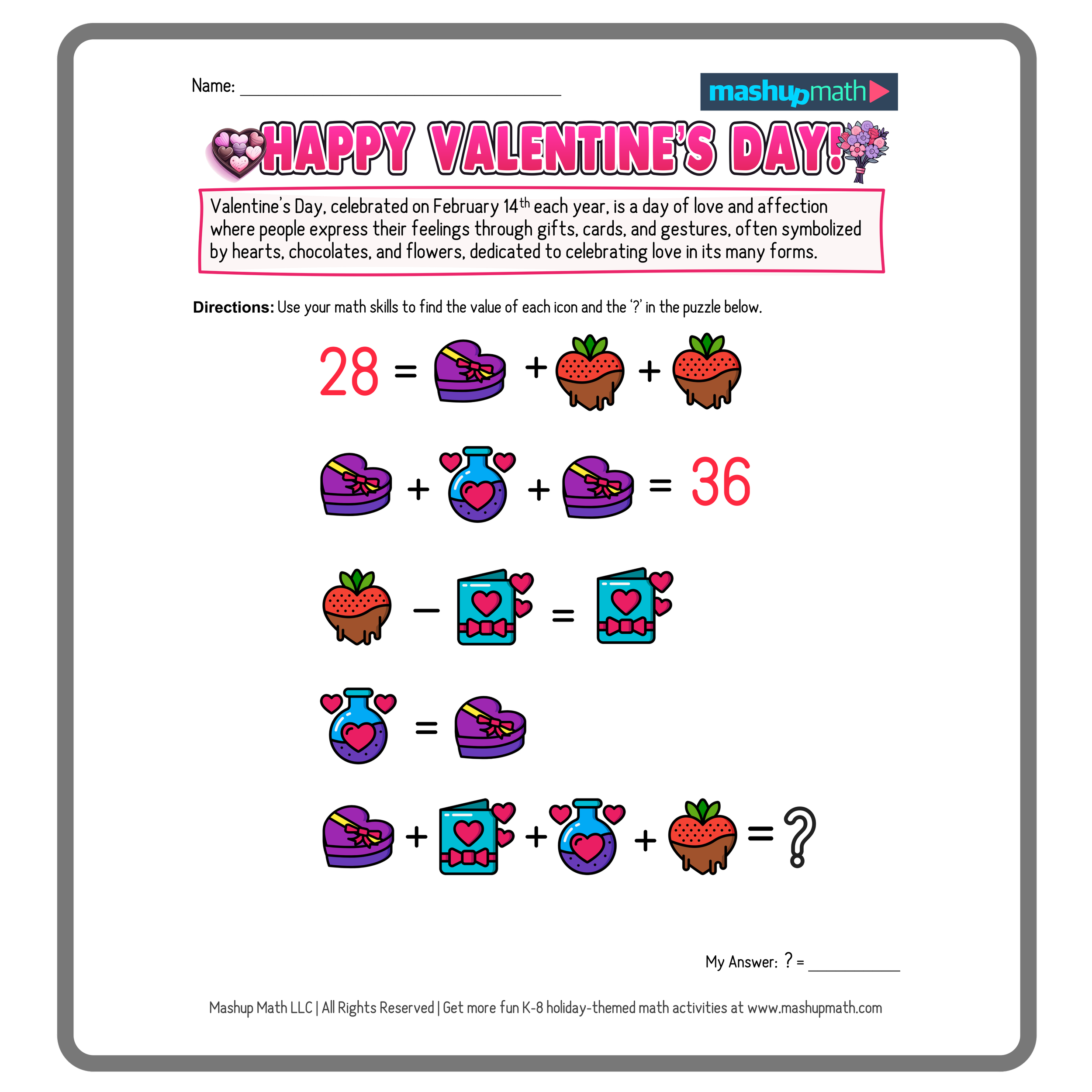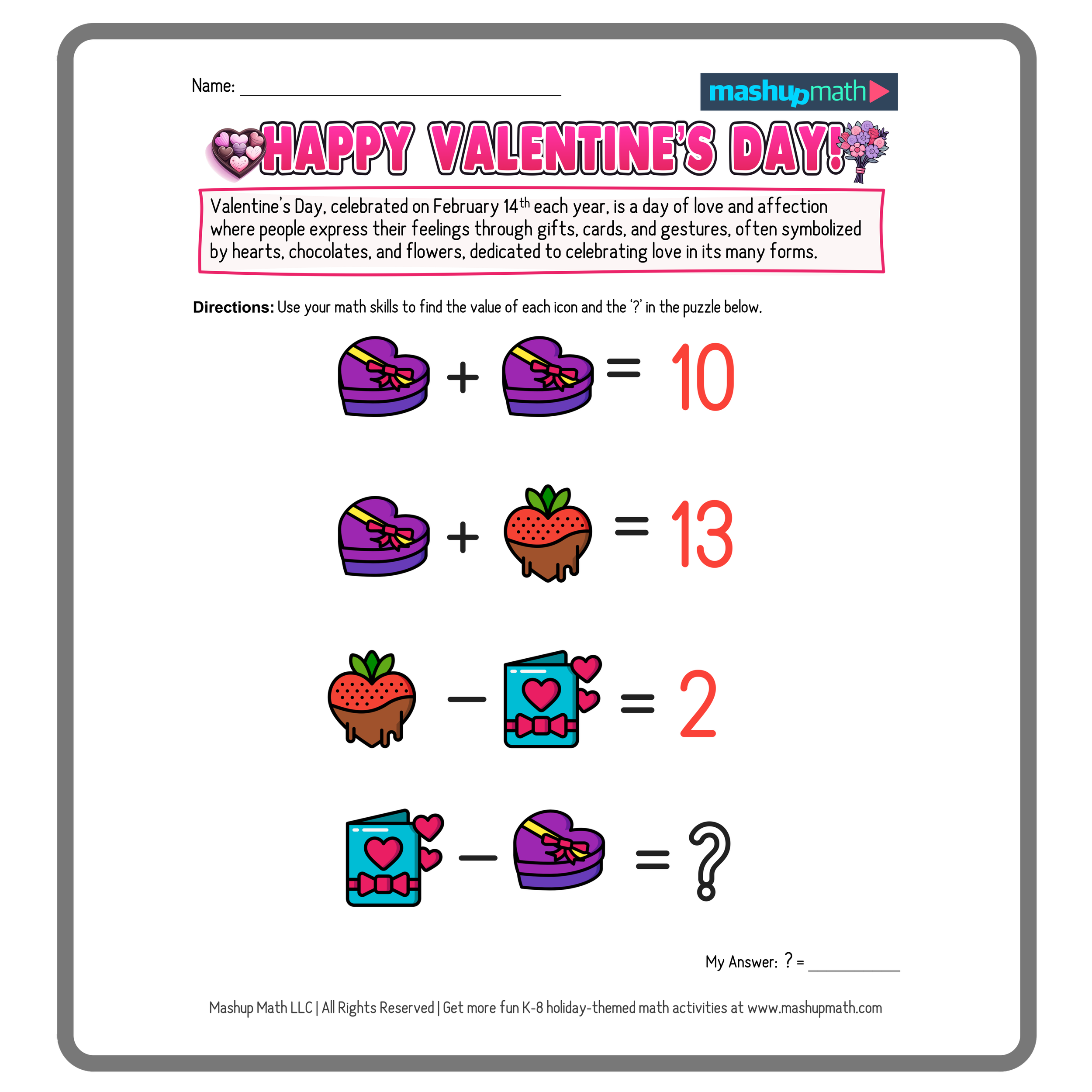 Love is in the air! February 14th is Valentine’s Day—a time for exchanging cards, gifting flowers, and enjoying heart-shaped chocolates with loved ones. Whether you’re celebrating with family, friends, or your students, there are plenty of ways to make the day special—including fun, holiday-themed math activities to keep learning engaging and festive!
