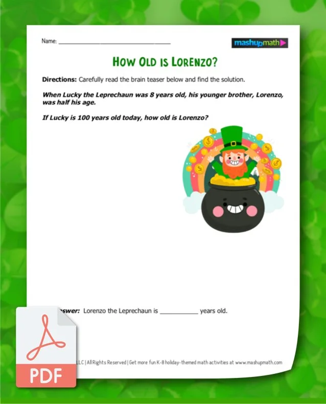 Looking for fun St Patricks Day Math Worksheets to share with your students? (Image: Mashup Math MJ)